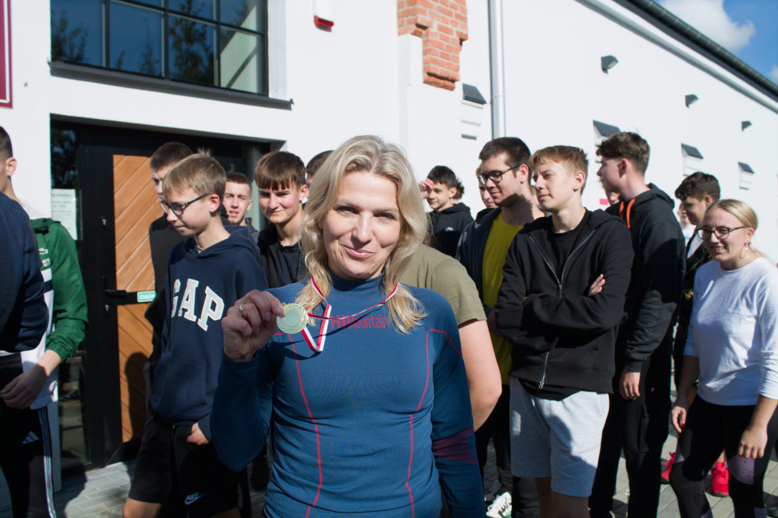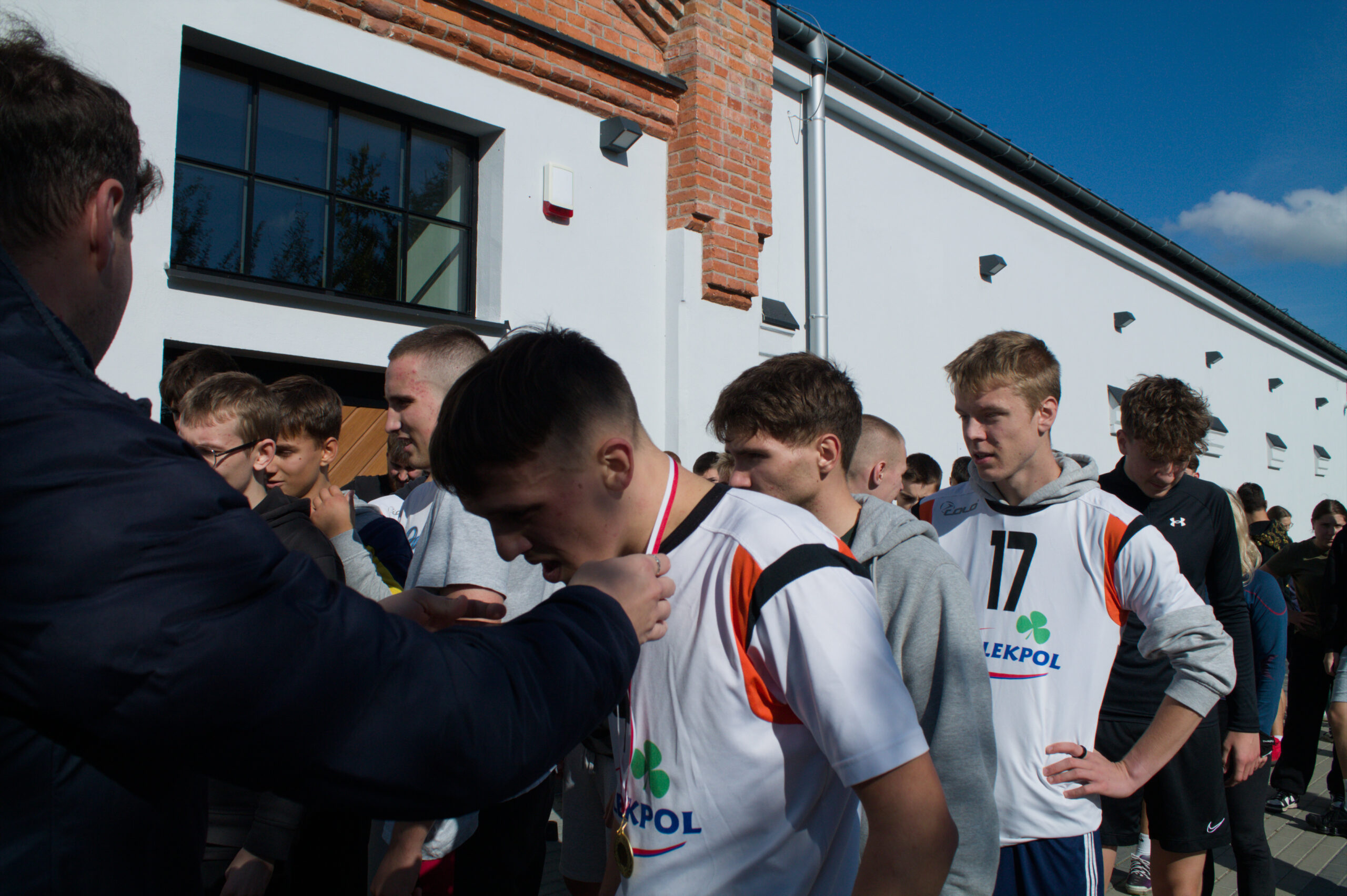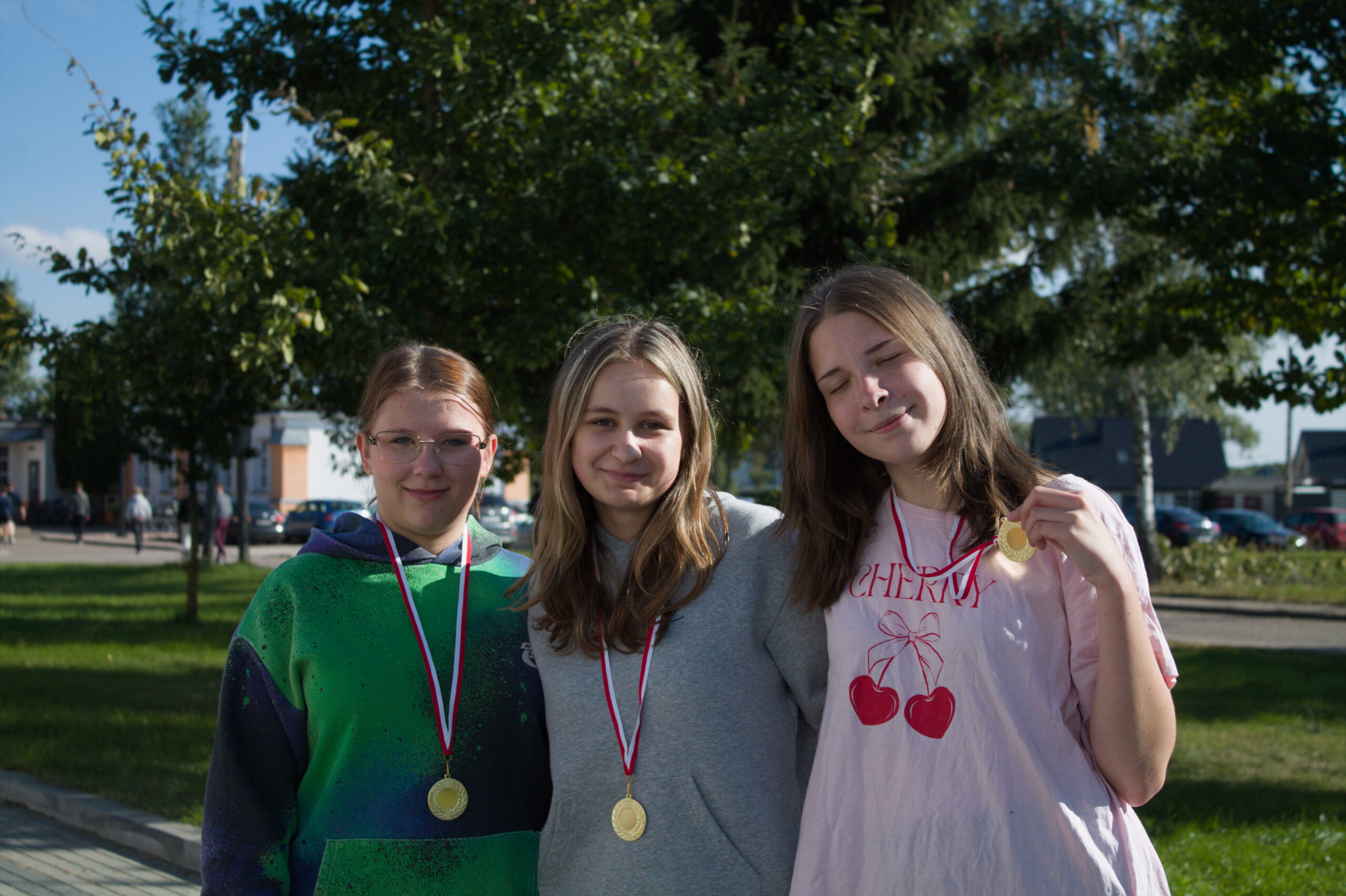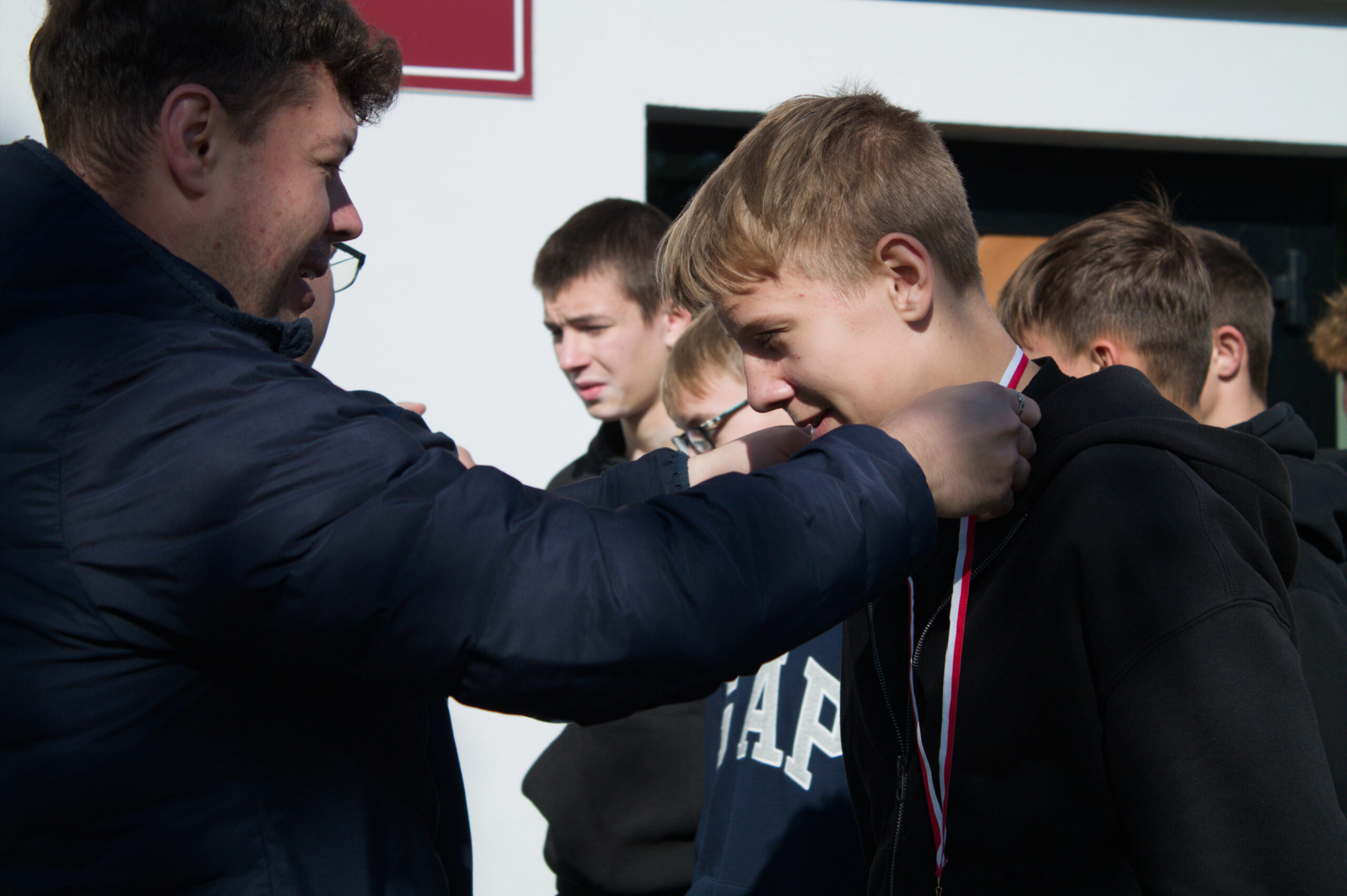 Na mecie na wszystkich uczestników biegu czekały pamiątkowe złote medale. Zwieńczeniem wydarzenia było wspólne zdjęcie przy wejściu głównym do szkoły.