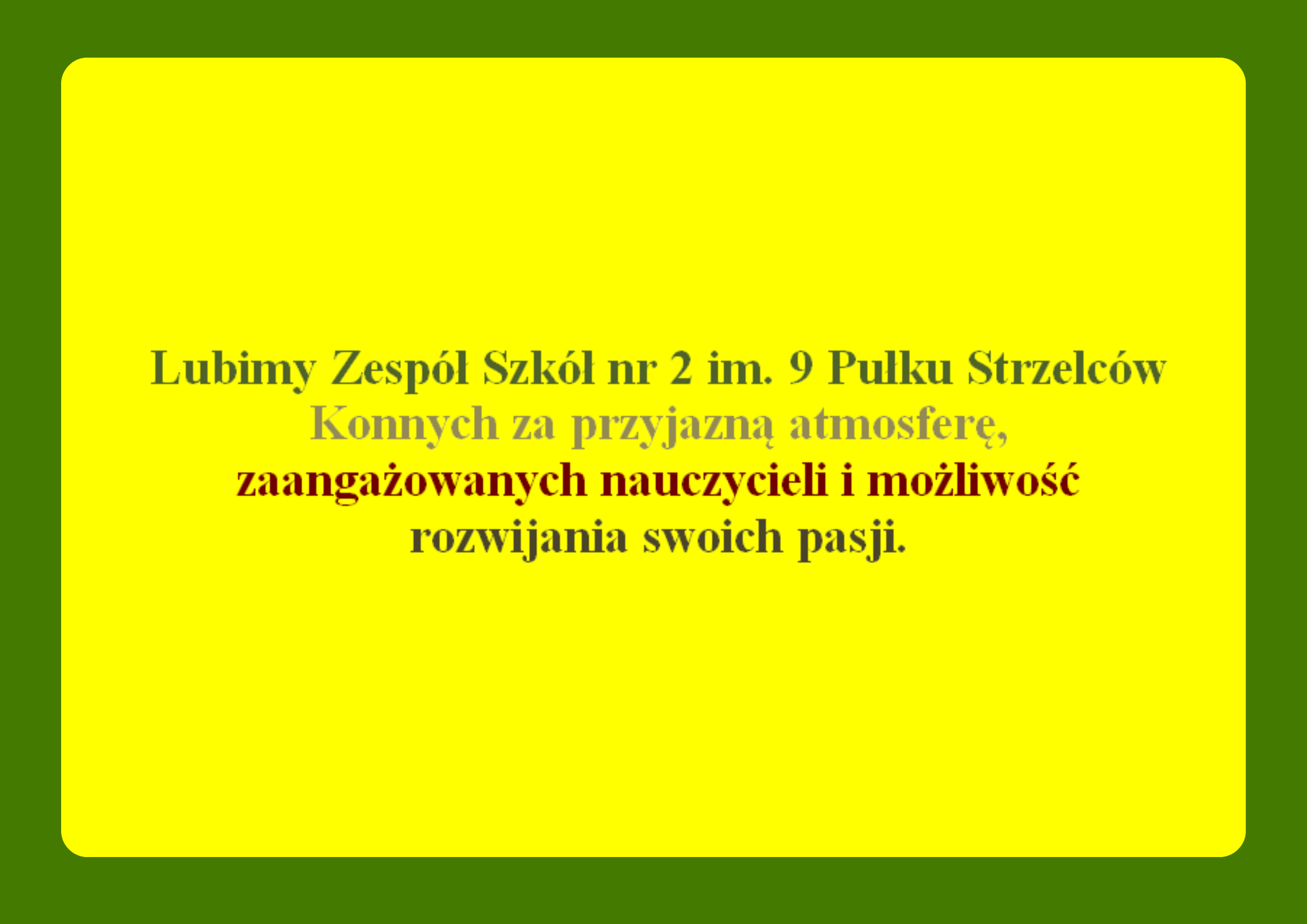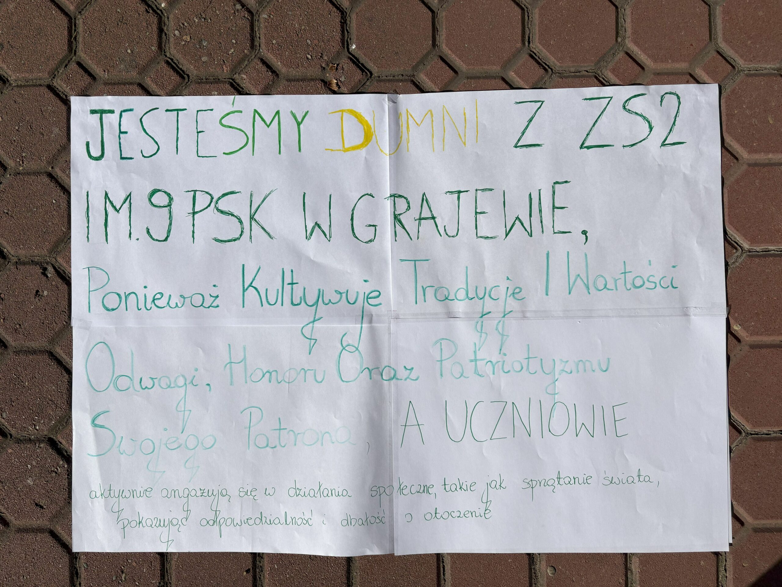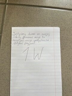 „Napisz jedno zdanie, dlaczego jesteś dumny/a z tej szkoły.”