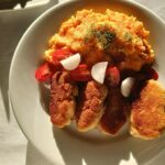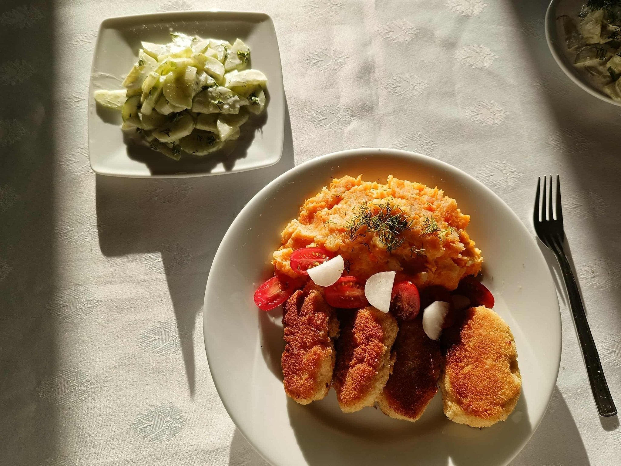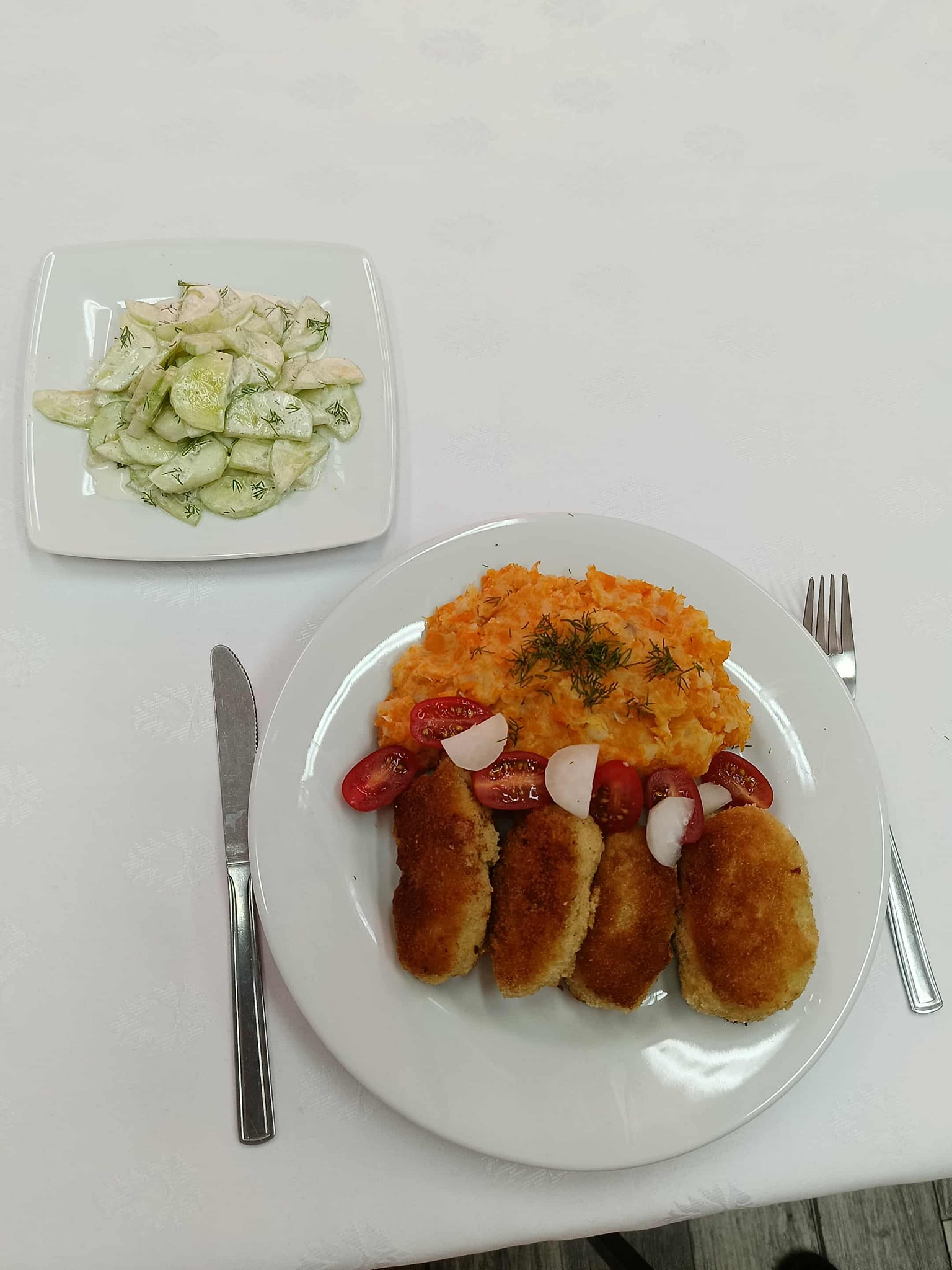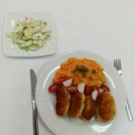 Obiad 2a Published 6 listopada 2025 | Autor: Paulina Agnieszka Skorupa W czwartek klasa 2a przygotowała zestaw obiadowy: kotlet pożarski wraz z puree ziemniaczano – marchewkowym. Na deser ciasto „Śnieżny puch”.