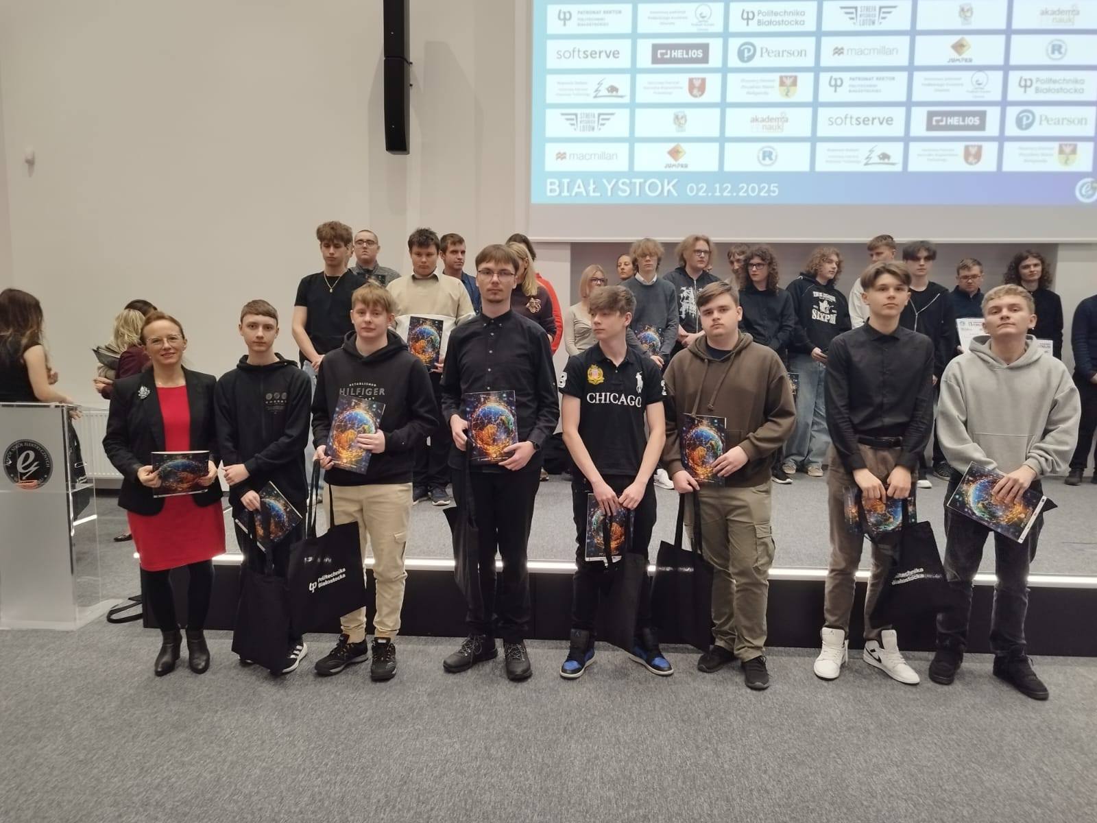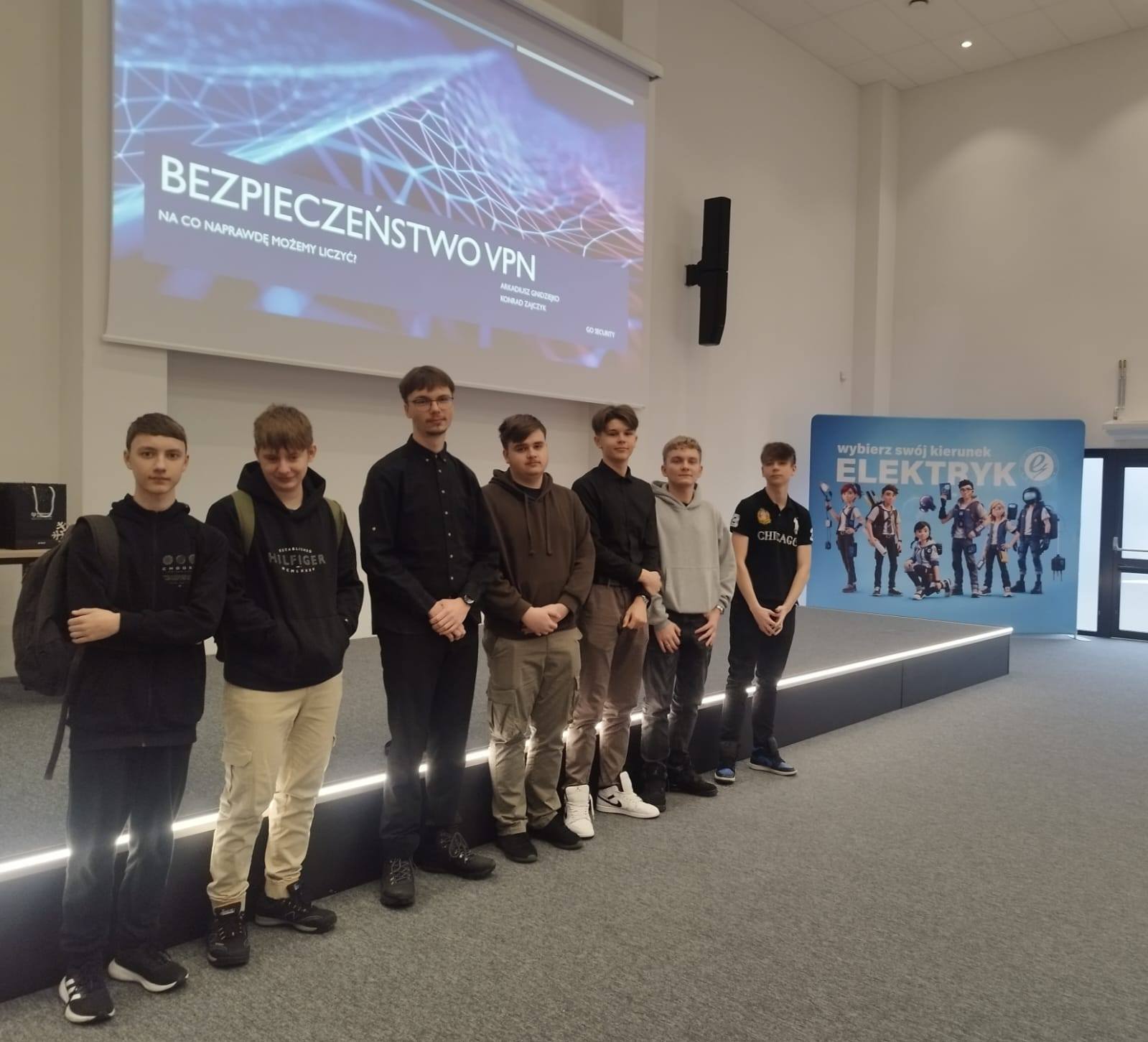 Dnia 2 grudnia 2025 r. uczniowie klasy 3p i 4dp w osobach Monuszki Dawid, Pliszka Krystian, Oborski Xawier, Nerkowski Oliwier, Chojnowski Dawid, Szmigiel Rafał i Zyskowski Bartosz uczestniczyli w XVI Edycji Międzyszkolnego Konkursu „IT in English” organizowany przez Zespół Szkół Elektrycznych im. Janusza Groszkowskiego w Białymstoku. Uczniowie pisali test w formie elektronicznej, uczestniczyli w prezentacji nowinek technologicznych związanych z cyber bezpieczeństwem oraz wysłuchali prelekcji pt. „Informatyka – przeszłość, teraźniejszość, przyszłość”, którą wygłosił dr inż. Tomasz Grześ z Wydziału Informatyki Politechniki Białostockiej. Uczestnikom gratulujemy bardzo wysokich wyników.