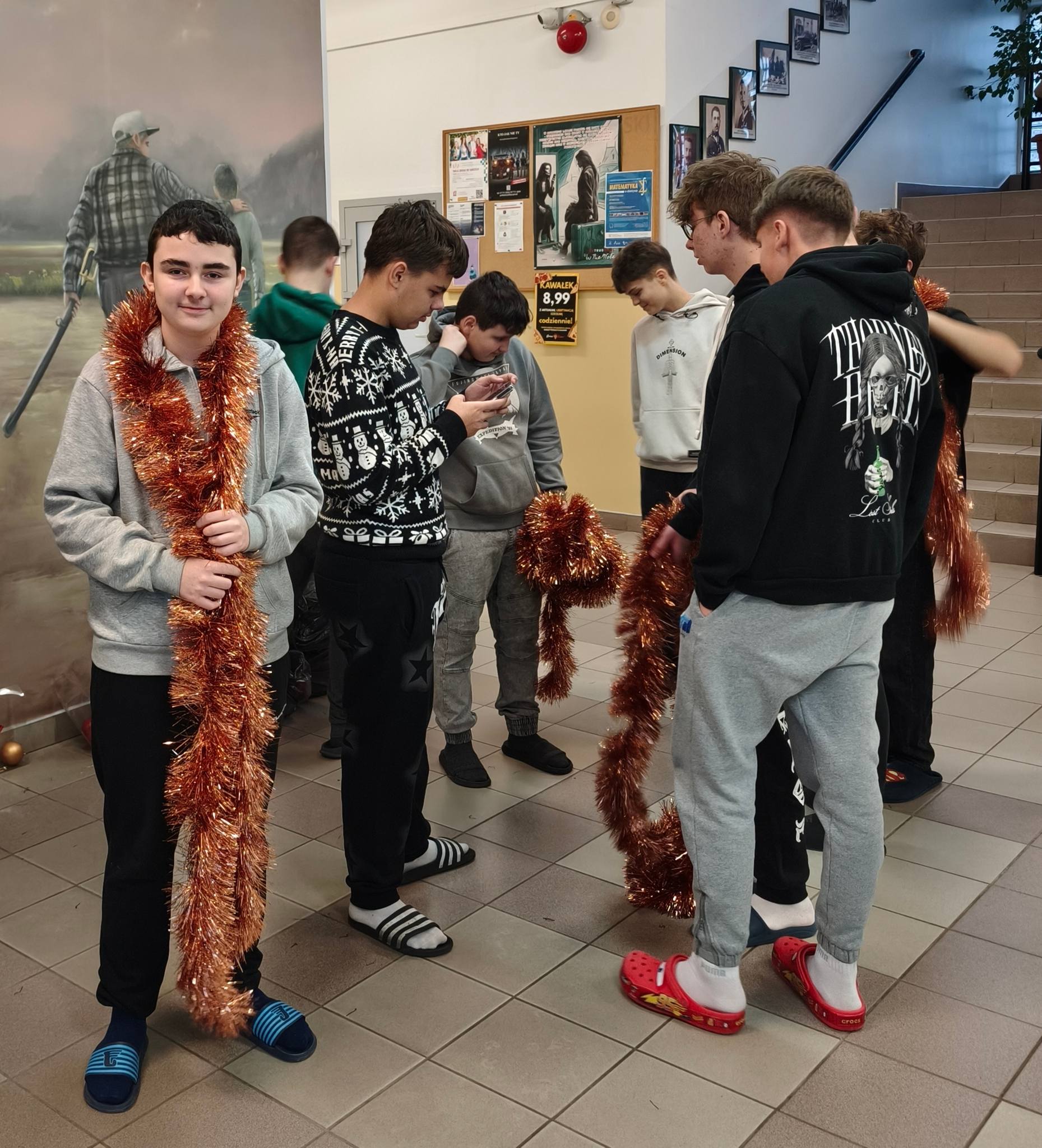 Dzisiejszego poranka uczniowie klasy 1d ubrali choinkę, wprowadzając do szkoły prawdziwie magiczną atmosferę. Dziękujemy Wam za zaangażowanie – teraz hol jest gotowy na jutrzejszy kiermasz i nadchodzące świąteczne chwile! A już w sobotę Mikołajki… ciekawe, czy Mikołaj zostawi coś pod naszą choinką?
