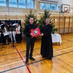 Podczas spotkania odbyło się wspólne kolędowanie przy akompaniamencie chóru prowadzonego przez księdza Adama, a także świąteczny quiz dotyczący narodzin Pana Jezusa, który w ciekawy i radosny sposób pozwolił przypomnieć sobie wydarzenia związane z Bożym Narodzeniem. Pierwsze miejsce w quizie zajął Bartosz Randzio z klasy 4dp – serdeczne gratulacje!