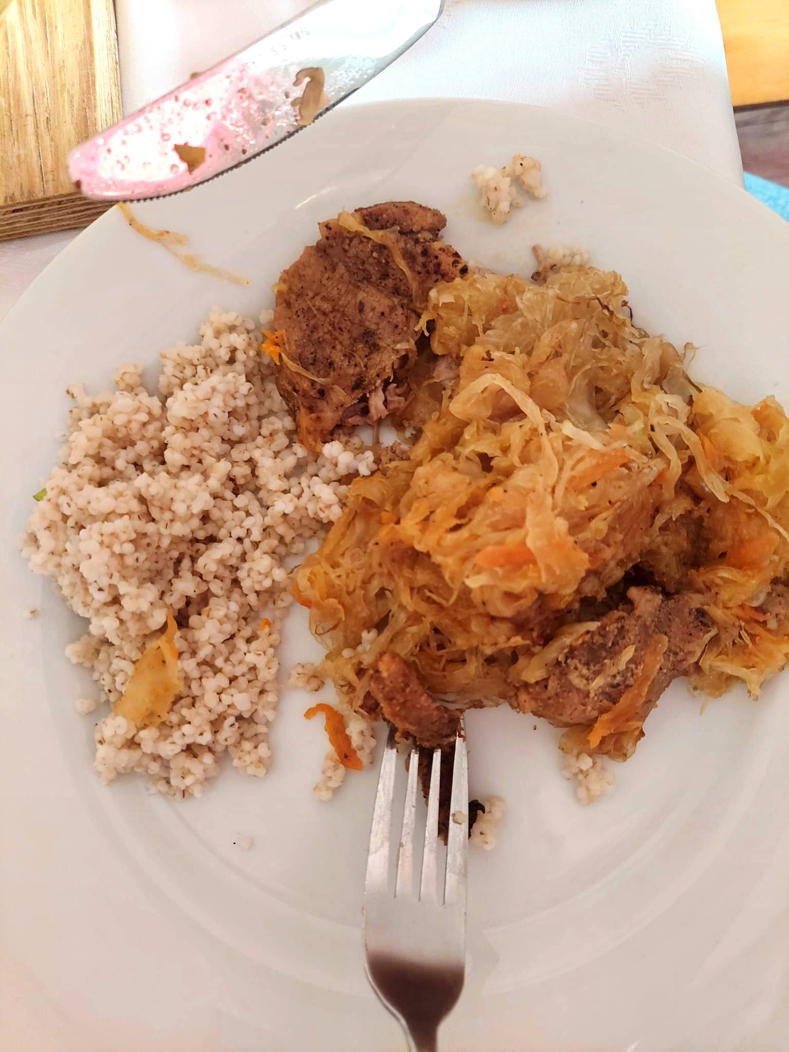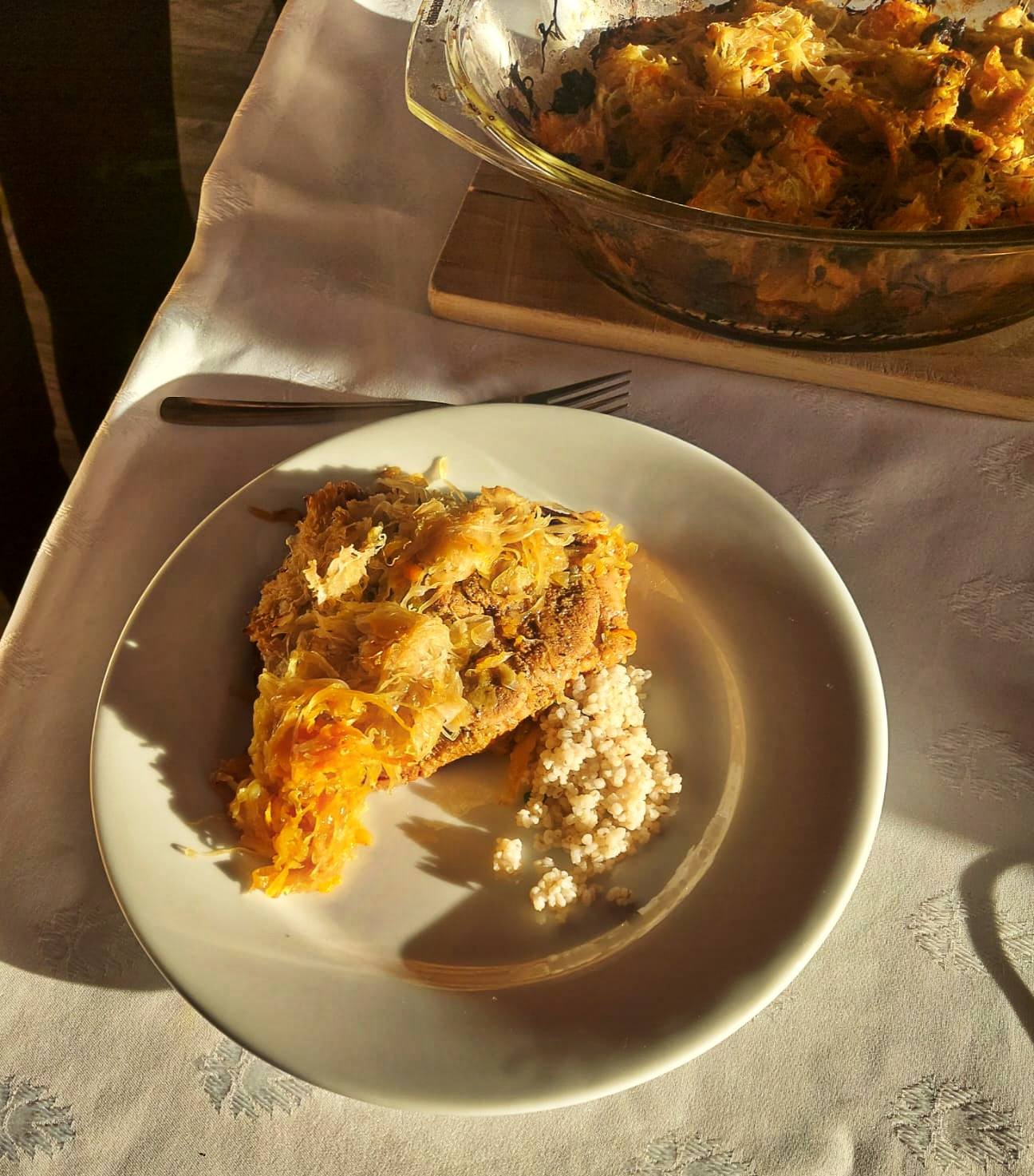 Dziś klasa 2a przygotowała pyszną, świąteczną karkówkę w kapuście kiszonej. Danie wybitne — świetnie przyprawione, mięciutkie mięso oraz pieczona kapusta podana z ryżem lub kaszą jęczmienną.