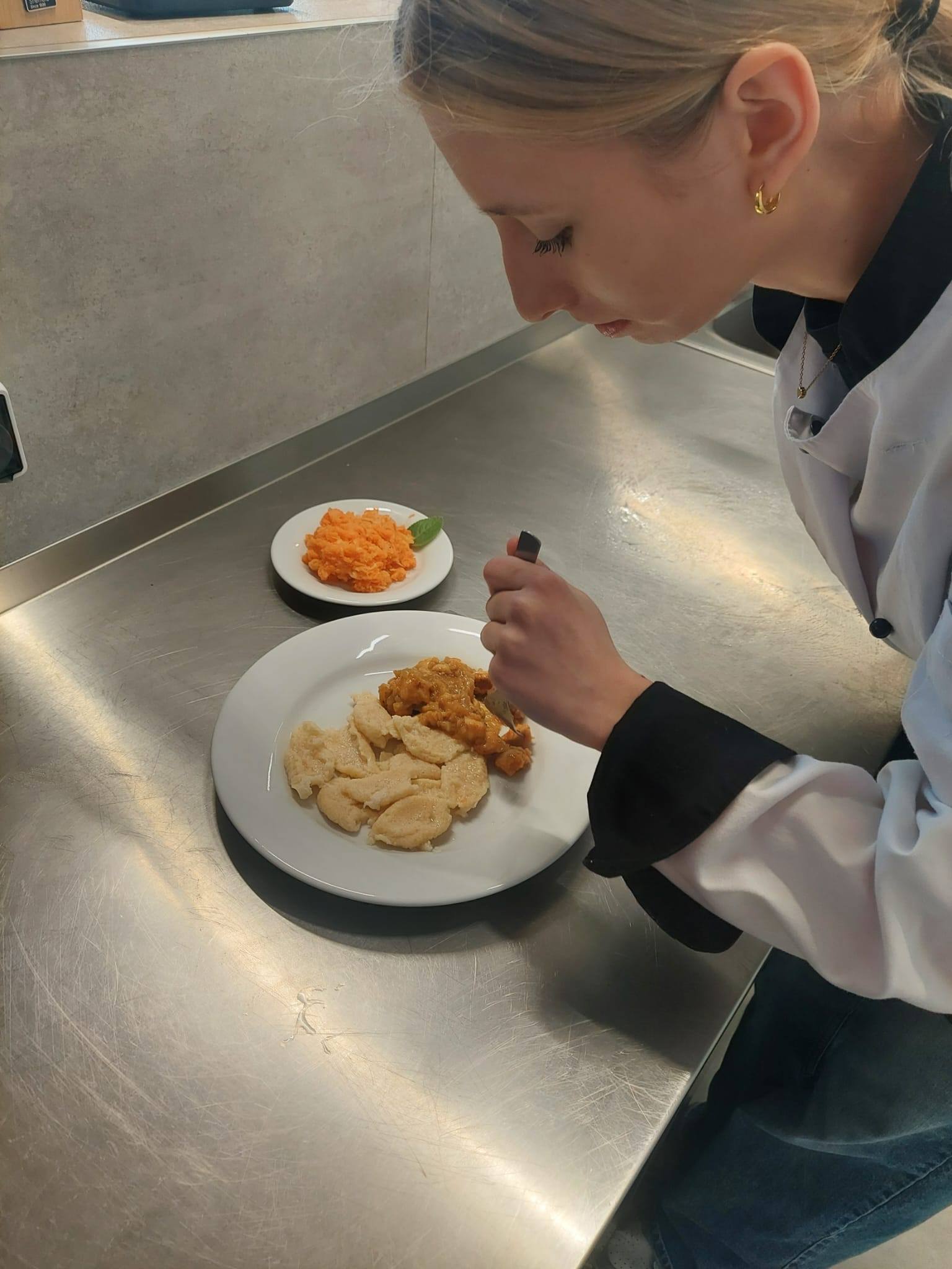 Propozycja obiadowa klasy 2a Published 11 marca 2026 | Autor: Paulina Agnieszka Skorupa Klasa 2a przygotowala pyszne, lekkostrawne danie obiadowe – gulasz z piersi kurczaka z kluskami kładzionymi i surówką z marchewki i jabłka. Polecamy tym, którzy poszukują prostych i szybkich przepisów.