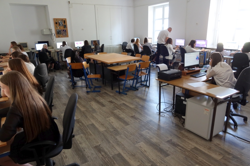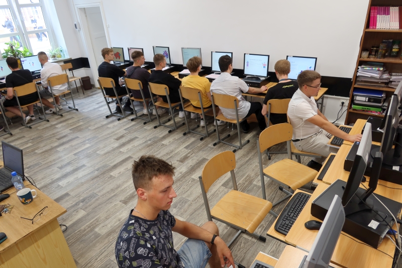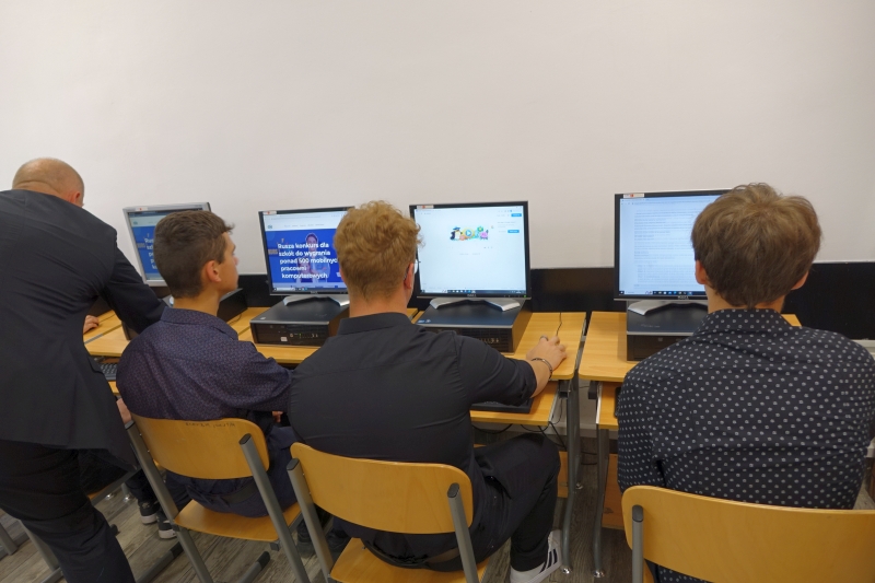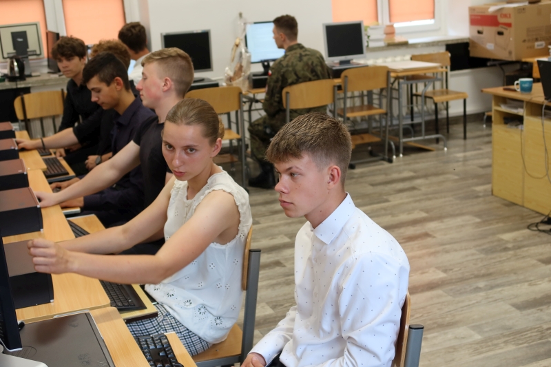 W dniu 23 czerwca 2023 r. tuż po zakończeniu roku szkolnego i rozdaniu świadectw szkolnych uczniowie naszego Technikum przystąpili w 3 pracowniach komputerowych (podzieleni na grupy) do przyswajania wiedzy z kursu Bezpieczni w sieci „Cyberzagrożenia. Nie wpadnij w sieć przestępcy”. Edukacja młodzieży z obszaru cyberbezpieczeństwa jest niesłychanie ważna i cieszymy się, że udało nam się zaangażować aż 199 uczniów klas Technikum do wzmocnienia kompetencji cyfrowych. W ten oto sposób zainaugurowaliśmy projekt „Pracownia Kompetencji Cyfrowych”, co jest jednym z warunków, by wygrać mobilną pracownię komputerową dla naszej szkoły w skład której wchodzi: 16 laptopów wraz z przenośną szafą, oprogramowanie umożliwiające zarządzanie przez nauczyciela pracami uczniów oraz interaktywny monitor. Laureaci konkursu (szkoły) zostaną wyłonieni do 31 lipca 2023 r.