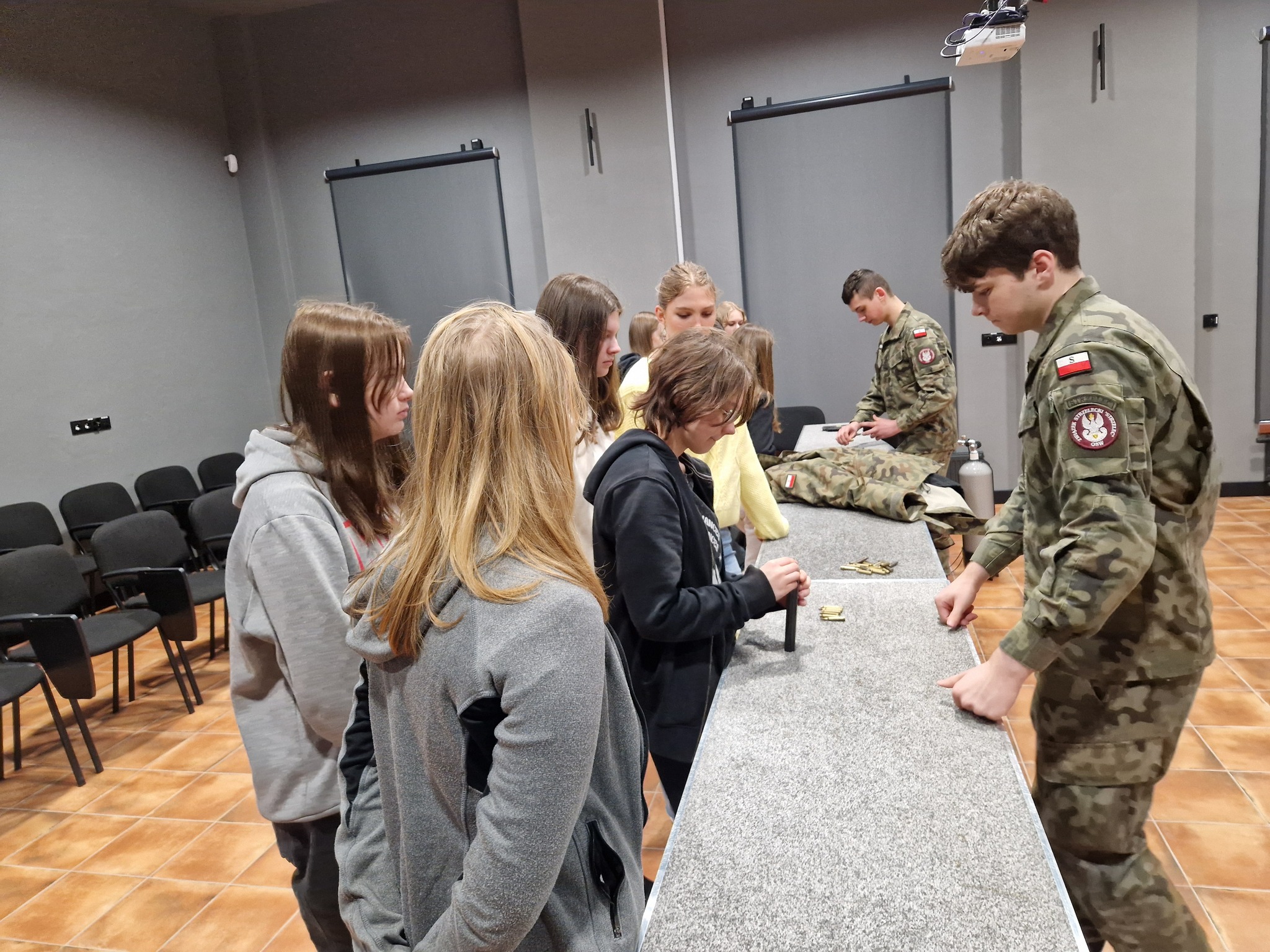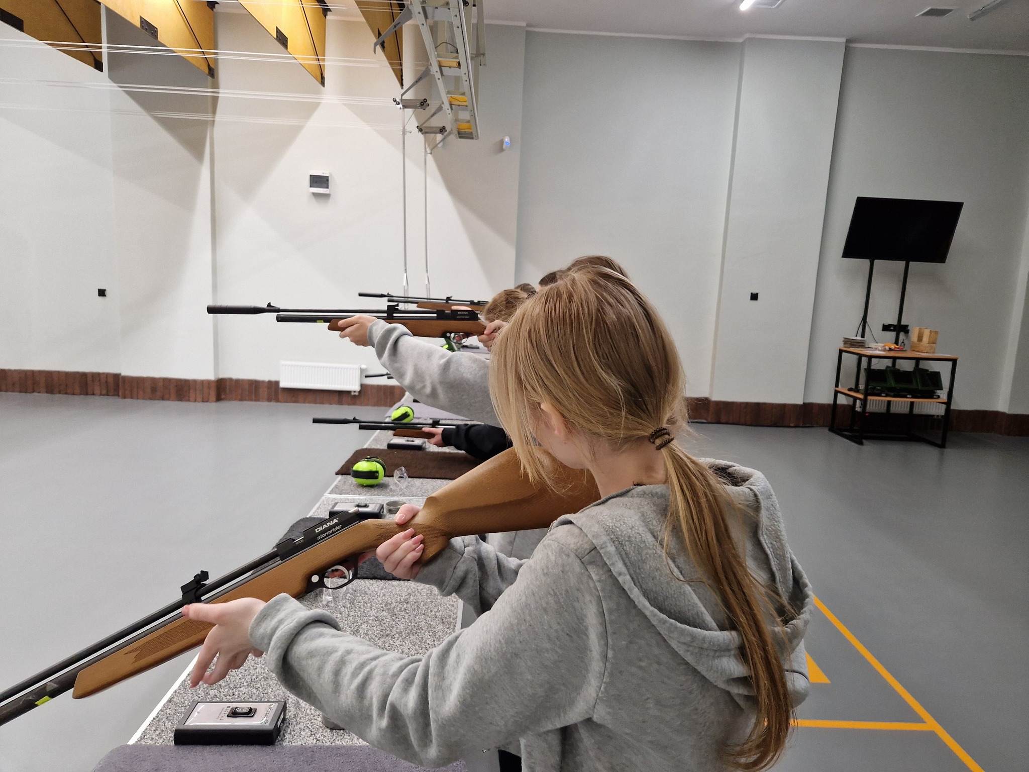 Uczniowie realizowali zagadnienia z podstaw strzelania z broni pneumatycznej oraz ładowania magazynka nabojami.