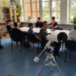 Prezentacja szkolnego teleskopu i rozmowy o astronomii.